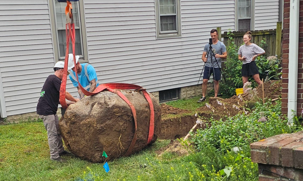 Any time you’re lifting a 5-ton chunk of Earth into the air, there are dangers present. The crane company was very professional though, and we were only in danger of being extremely amazed at the rock floating through the air!